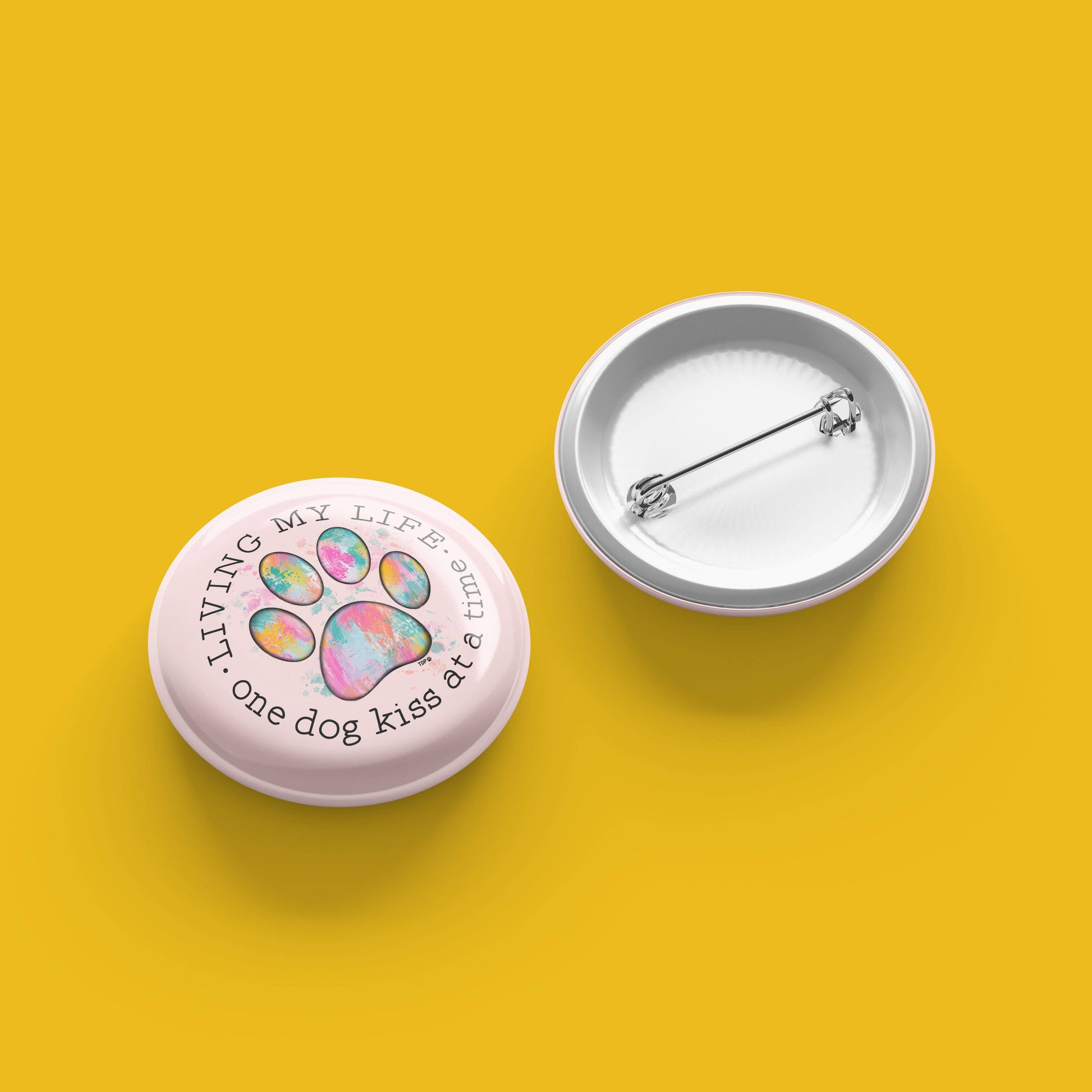 1.25" x 1.25" round button Pin-back style Perfect for: hats, jean jackets, backpacks and more! Super light weight & fun